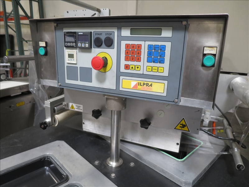 MODIFIED ATMOSPHERE PACKAGING TRAY SEALER/CROSS LABELER W/44" DIA. ROTATING TABLE