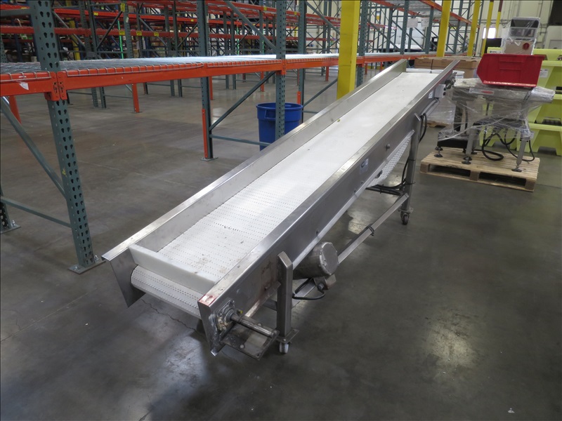 APPROX. 12' POLY-BELT INCLINE CONVEYOR ON CASTERS