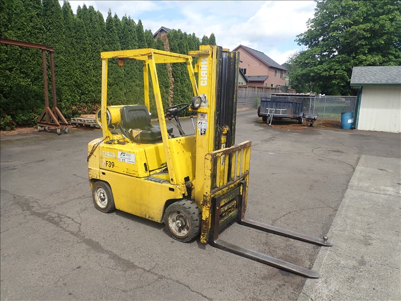 3250 LB SOLID TIRE FORKLIFT, 3-STAGE MAST, SIDE SHIFT, PROPANE