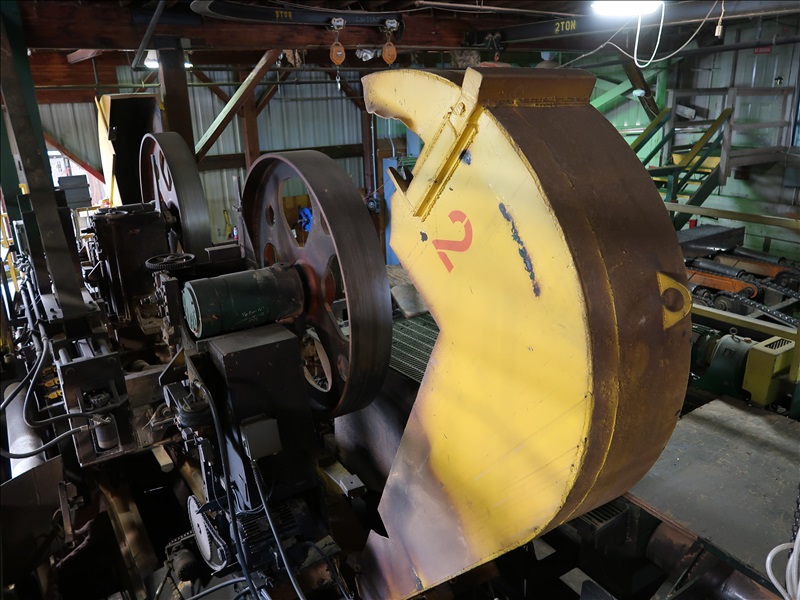 5' TEMPOSONIC POSITIONED VERTICAL TWIN BAND RESAW W/RELIANCE 150 HP/1,190 RPM MOTORS, 1" TOP & BOTTOM WHEELS, HYDRAULIC HOODS, APPROX 25' POWERED INFEED ROLLCASE, (6) 8" X 30" CANTED ROLLS, 3-1/2' 4-STRAND INFEED TRANSFER W/CANT TURNER, PRESS ROLLS, SKK & MOTOR TO SKK DRIVES, 26' POWERED OUTFEED ROLLCASE W/(9) 8-1/2" X 72" KNURLED & SMOOTH ROLLS, 7' X 11-STRAND OUTFEED BOARD PICKER TRANSFER, SKK GEARHEAD DRIVE MOTOR, 60 HP SETWORKS HYDRAULIC UNIT, ALLEN BRADLEY MCC & PLC, SPARE SAWS, GUIDES & PARTS