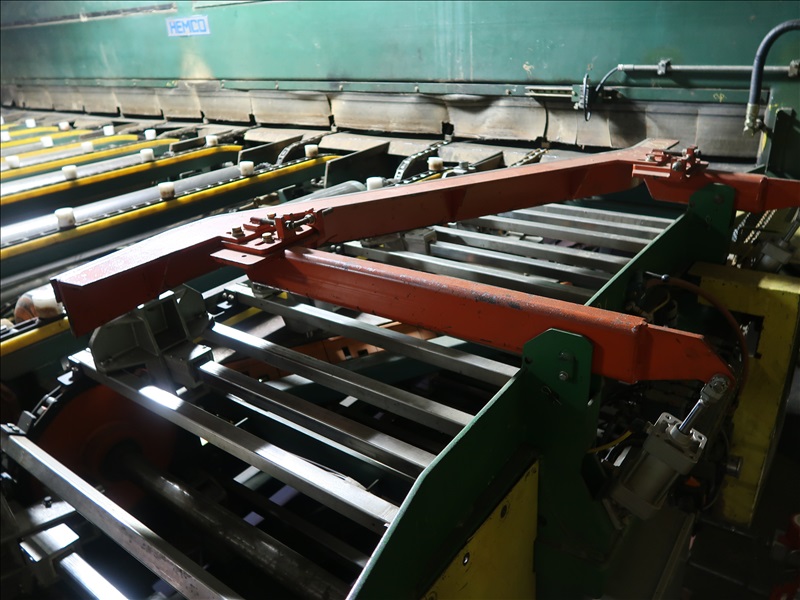 MINI POSI-LOCK POSITIONING FENCE, 0"-24" ADJUSTMENTS, (10) PADDLES, (8) SCAN SEGMENTS, 15" LUG SPACE, 9' EVEN ENDING 81X LUGGED TRANSFER W/(9) 8' EVEN ENDING ROLLS (SAWMILL)