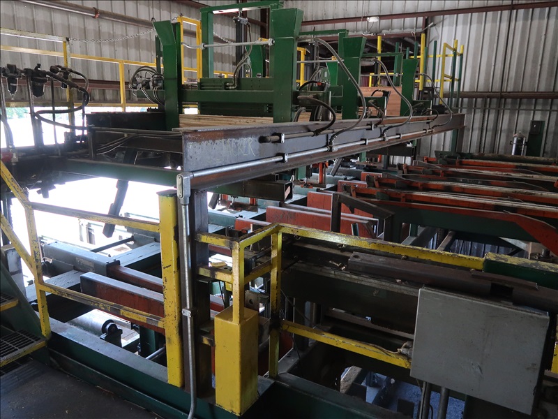 20' HYDRAULIC OPERATED CONTINUOUS OVER END STACKER W/DUAL 50 HP HYDRAULIC UNIT, 6-ARM X 56" LUMBER LOWERING PRIMARY HOIST, 7-ARM X 56" LUMBER LOWERING SECONDARY HOIST, (5) LUMBER PLACING ARMS, (3) LATH MAGAZINES, 30' 4-SECTION INFEED TRANSFER SYSTEM, 24' 5-STRAND 81XHD W/SKK & CROSS OVER ROLLCASE, ALLEN BRADLEY MCC & PLC (PLANER MILL)