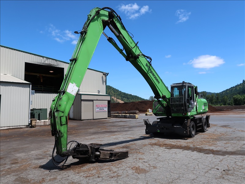 RUBBER TIRE MATERIAL HANDLER LOG LOADER W/DEUTZ BF6M1013 6-CYLINDER 150KW DIESEL ENGINE, MYRMO ROTARY LOG GRAPPLES, 45' BOOM MAX REACH, (8) SOLID 10.00-20 TIRES, OUTRIGGERS