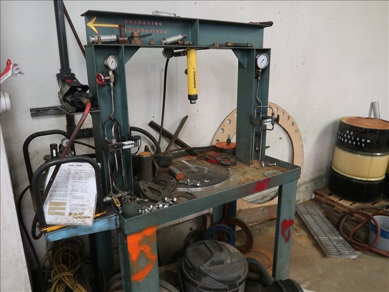 SHOP BUILT PRESSURE TEST STATION & ENERPAC HYDRAULIC PRESS CYLINDER