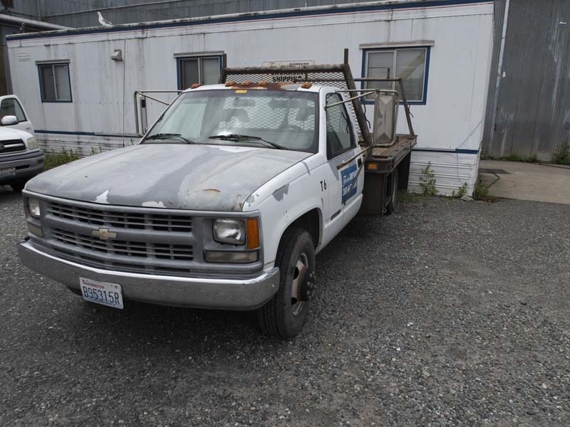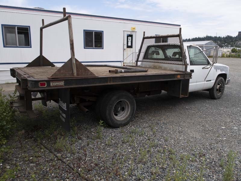 2 WHEEL DRIVE PICKUP W/ 12' FLATBED, V8, GAS, 5 SPEED MANUAL TRANSMISSION, DRW