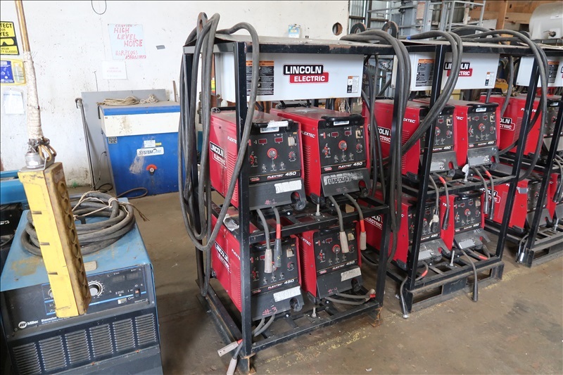 FOUR PACK WELDING UNIT W/ (4) LINCOLN FLEXTEC 450 CC/CV, DC WELDERS