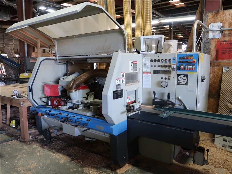 5-HEAD MOULDER, 9-1/16" X 4-3/4" MAX TIMBER SIZE, 18-78 FPM, 5-1/2 HP FEED MOTOR, 1ST BOTTOM HEAD 10 HP, RIGHT & LEFT SIDE HEADS 20 HP, 1ST TOP HEAD 20 HP, 2ND BOTTOM HEAD 15 HP, 8' HYDRAULIC DRIVEN 2-HEAD MOULDER FEED TABLE W/ 3-1/2' 6-STRAND POLY CHAIN