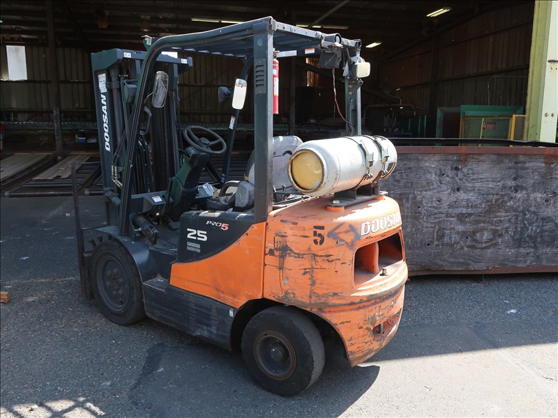 4,800 LB CAPACITY FORKLIFT, PROPANE, 184" 3-STAGE MAST W/SIDE SHIFT, 48" FORKS, SOLID TIRES