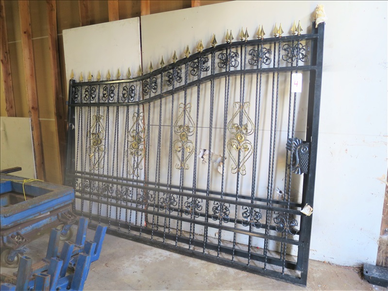 SET OF 9'8" X 74" TO 89" ORNATE METAL DRIVEWAY GATES (NEVER INSTALLED)