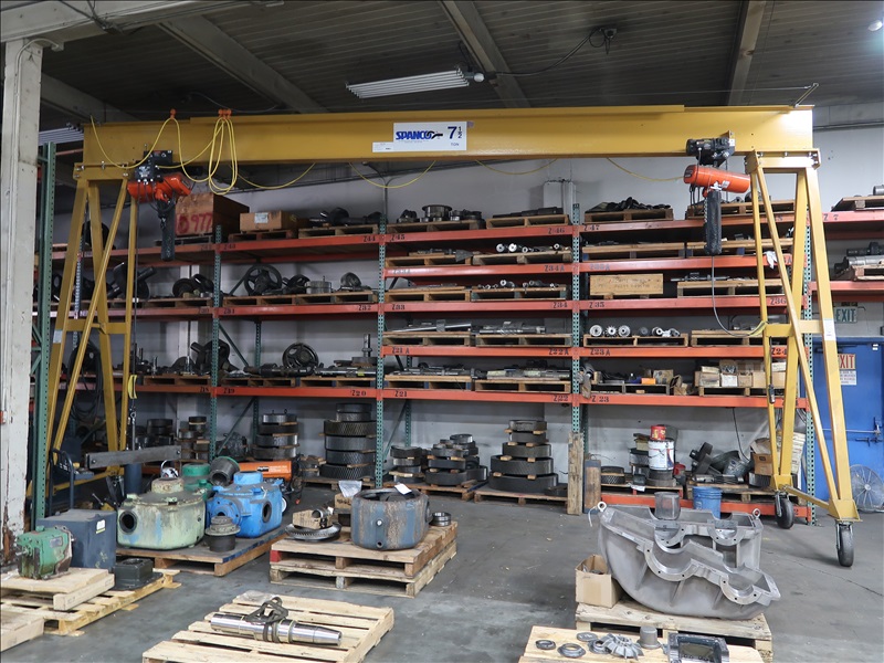 7-1/2 TON PORTABLE BRIDGE CRANE W/APPROX 20' SPAN, (2) CM LODESTAR 3 TON ELECTRIC CHAIN HOISTS W/POWER TRAVEL & PENDANT CONTROLS