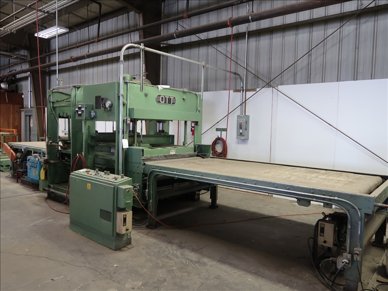 HOT PRESS, 55"X102" CAPACITY, (4) RAMS W/150MM STROKE, 11KW BOILER, APPROX 55" X 110" POWERED INFEED BELT, APPROX 48" X 117" POWERED OUTFEED BELT, CONTROLS & ELECTRICS, IN & OUTFEED SCISSOR LIFTS AVAILABLE