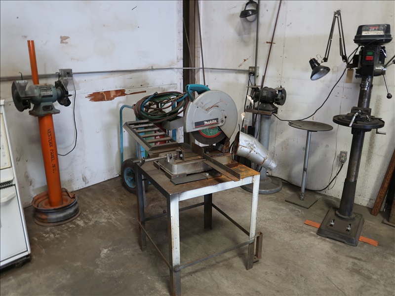 WELDERS; OXY/ACETYLENE SET; TABLE SAW; POWER FEED; BANDSAW; MINI LATHE; DRILL PRESS; DE GRINDERS; CHOP SAWS; AIR & ELECTRIC POWER TOOLS; STEAM CLEANER; FLOOR VACS; PALLET JACK; BANDERS; MOTORS; REDUCERS; BEARINGS; ELECTRICAL BOXES; FANS; CYLINDERS; VALVES