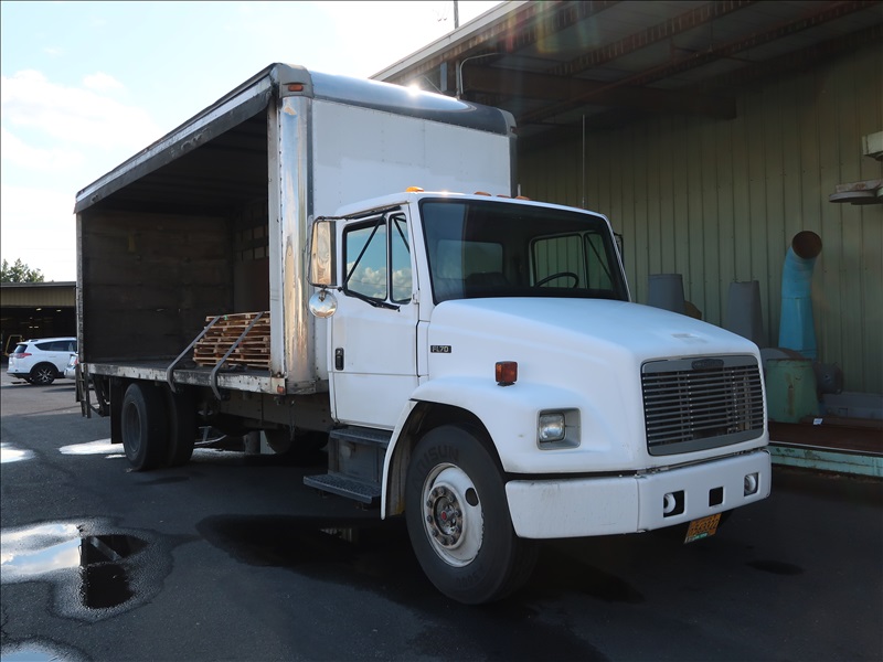 22' DUAL WHEEL PASSENGER SIDE CURTAIN VAN TRUCK, CUMMINS 6-CYLINDER DIESEL ENGINE, 6-SPEED MANUAL TRANSMISSION, LIFT GATE, 11R22.5 TIRES