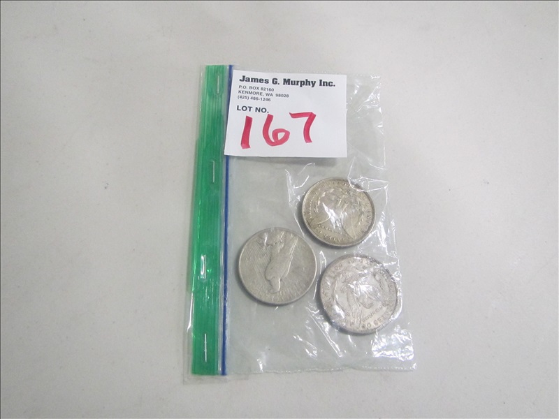 LOT, ASSORTED SILVER DOLLARS, (1) 1921, (1) 1921D MORGAN & (1) 1925 PEACE