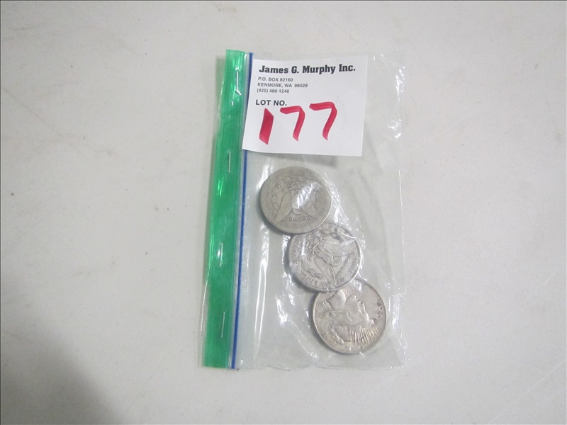LOT, ASSORTED SILVER DOLLARS, (1) 1878S, (1) 1921S MORGAN & (1) 1922 PEACE