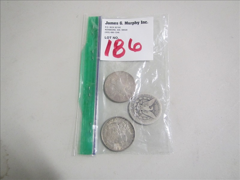 LOT, ASSORTED SILVER DOLLARS, (1) 1880O, (1) 1921 MORGAN & (1) 1922S PEACE