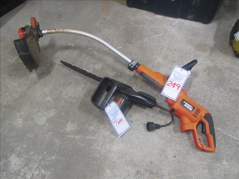 LOT, REMINGTON ELECTRIC CHAINSAW & BLACK & DECKER STRING TRIMMER, NO BATTERY OR CHARGER