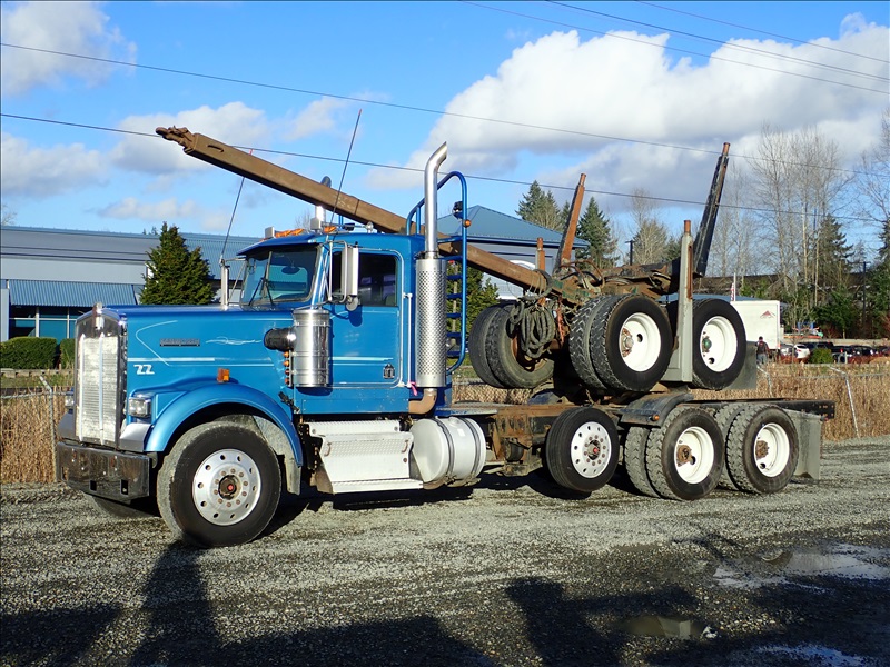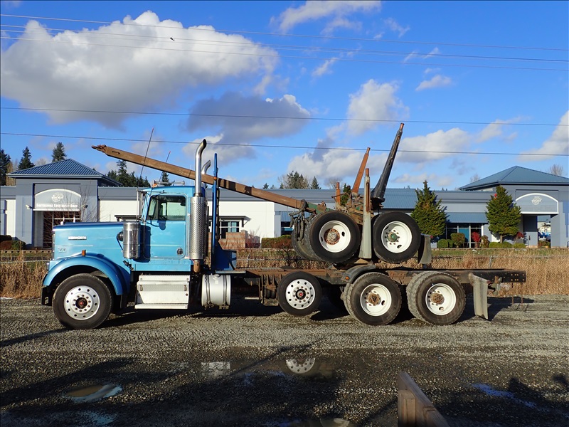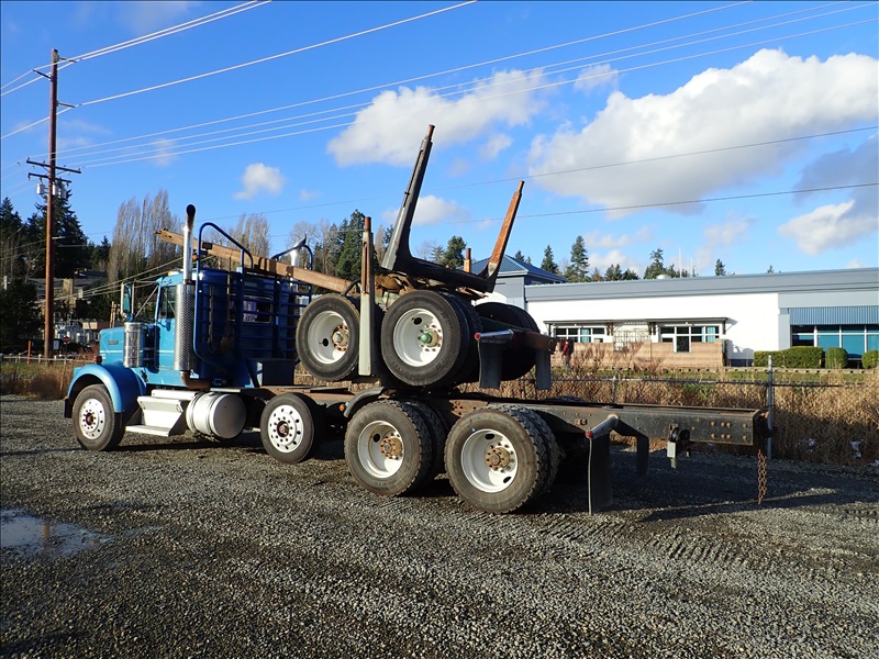 TRI/A LOG TRUCK, 500 HP CATC-15, 18 SPD, CHALMERSSUSPENSION, 256" W/B, 46,000LB REARS, 4.11 RATIO, DROPAXLE, 1989 PEERLESS T/A LOGTRAILER