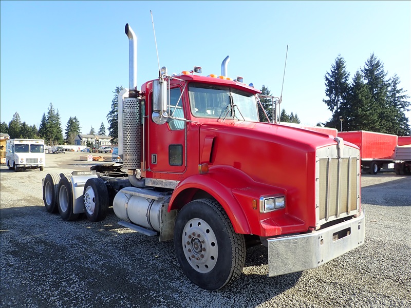 TRI/A DAY CAB TRACTOR, CAT 3406B, 15 SPD, 8 BAG, 222'' W/B, 40,000 LB REARS, DROP AXLE, WET KIT, SLIDER, (TITLE BRANDED, RECONSTRUCTED VEHICLE)