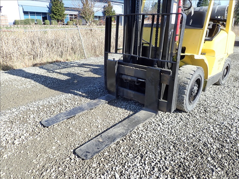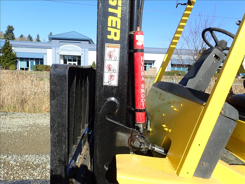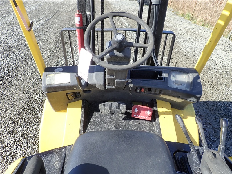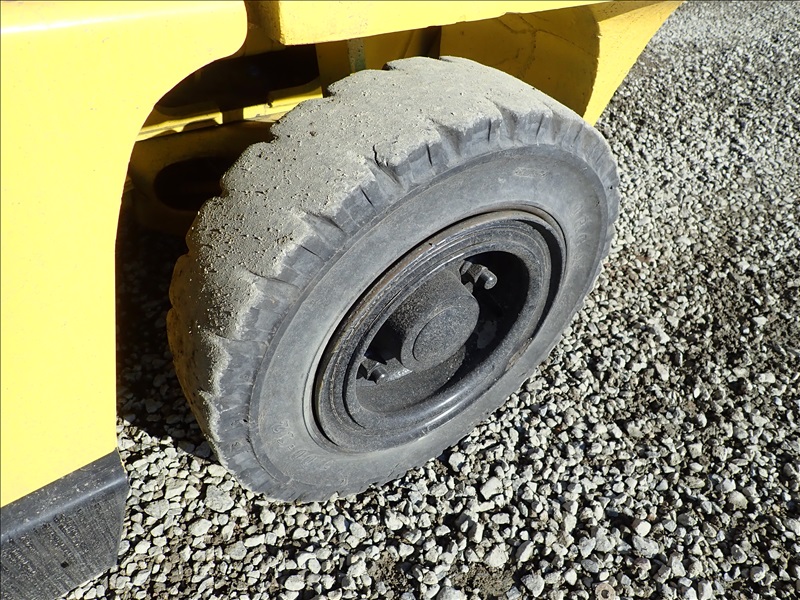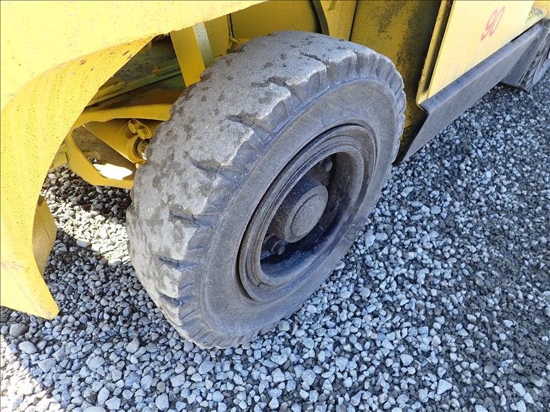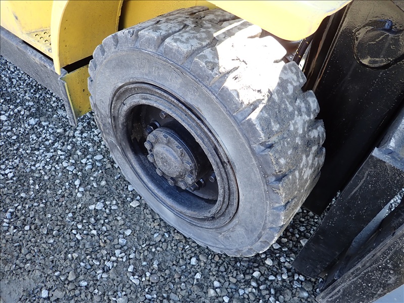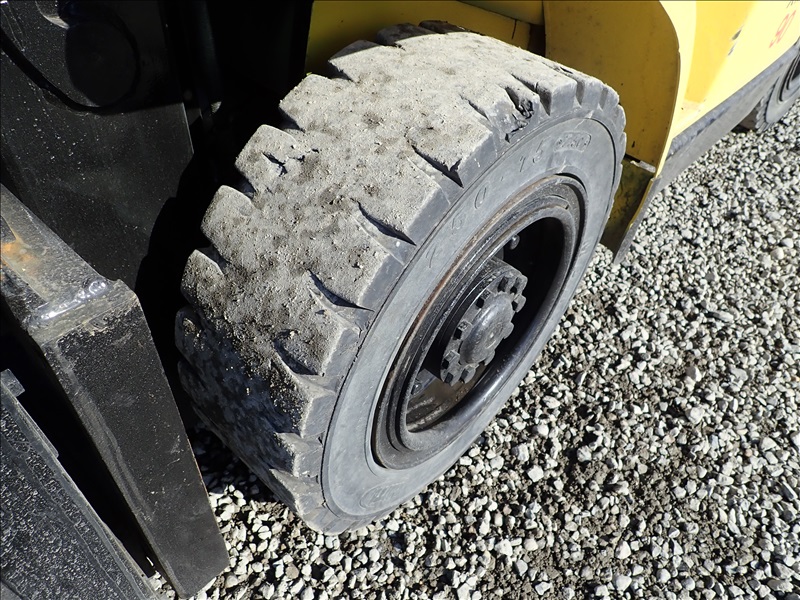 8300 LB SOLID CUSHION TIRE FORKLIFT, 143" FORK HEIGHT, 2 STAGE MAST, ACCUMULATOR, 6 CYL LPG, HOUR METER READS 40,013