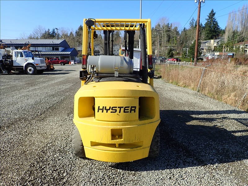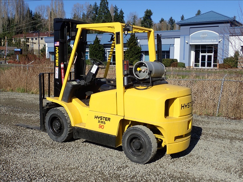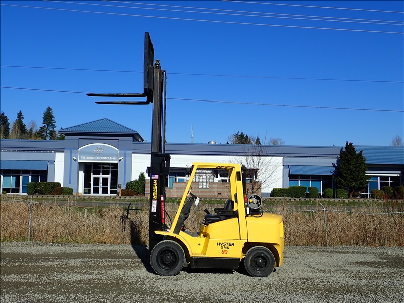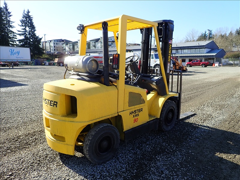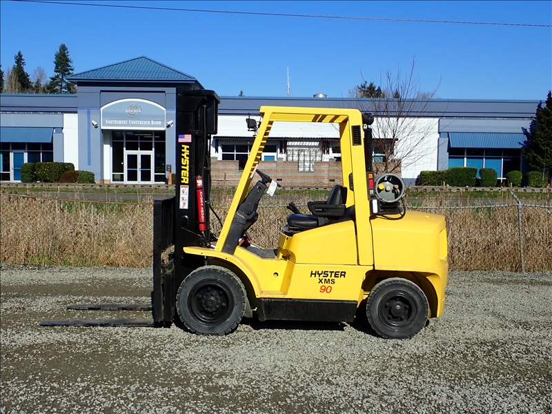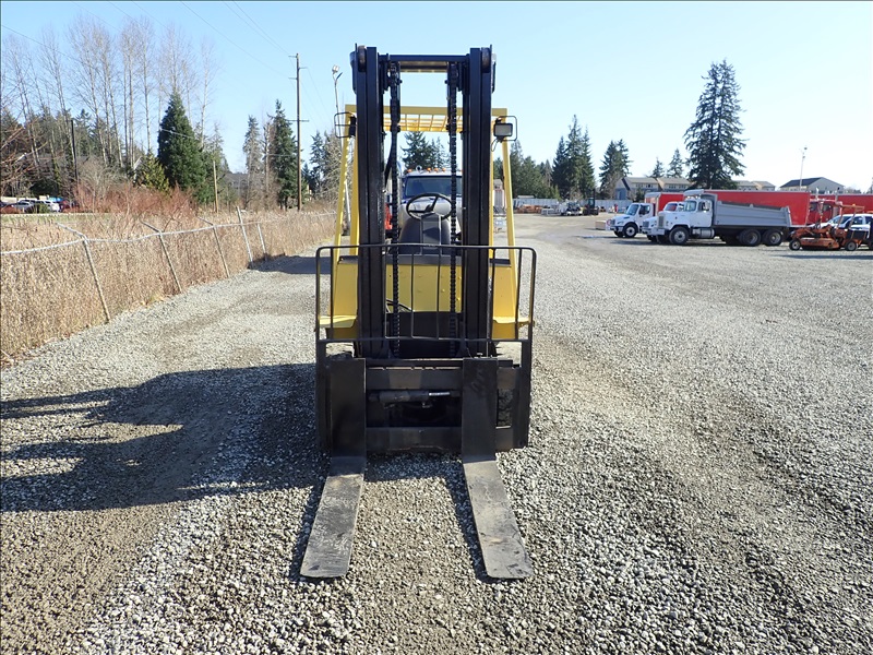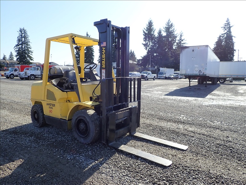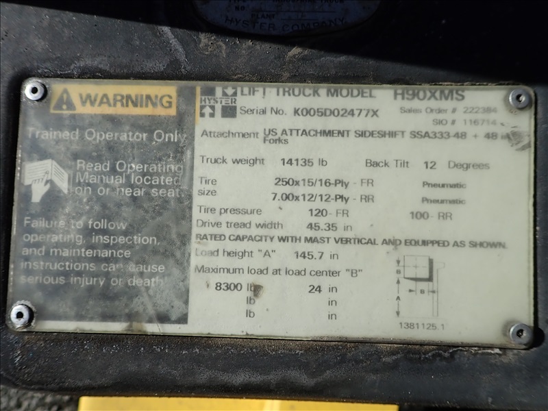 8300 LB SOLID CUSHION TIRE FORKLIFT, 143" FORK HEIGHT, 2 STAGE MAST, ACCUMULATOR, 6 CYL LPG, HOUR METER READS 40,013