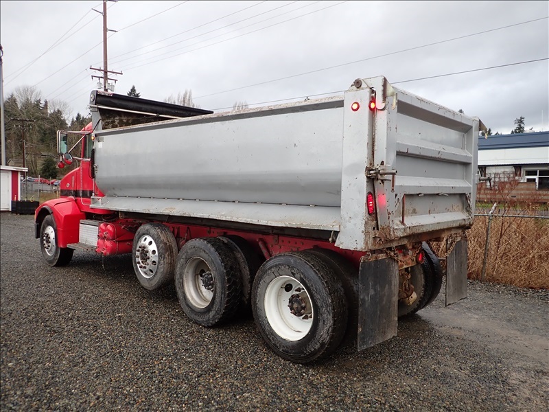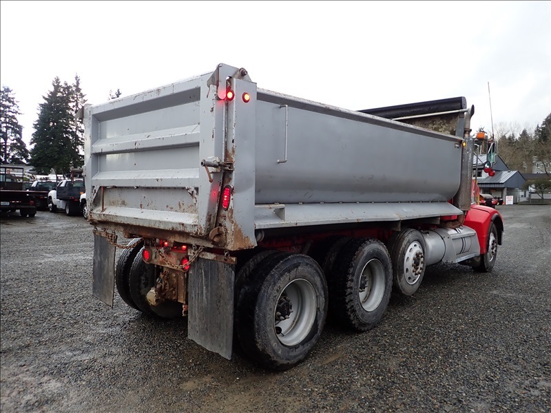 TRI/A DUMP TRUCK, 16'6" STEEL BOX, TARP SYSTEM, 306 HP CAT C-12, 8LL SPD, CHALMERS SUSPENSION, 194" W/B, DROP AXLE, PLUMBED FOR PUP