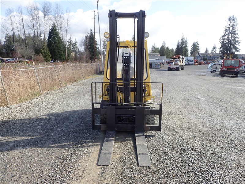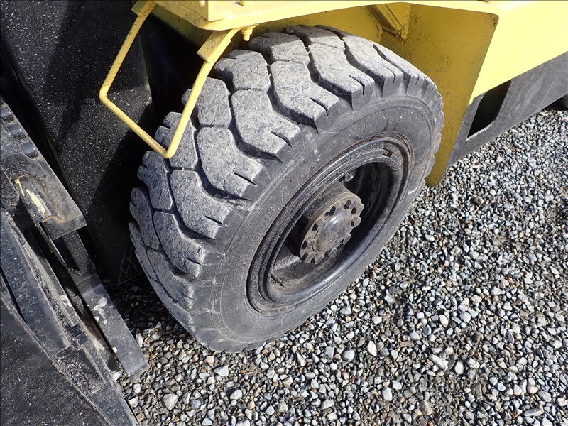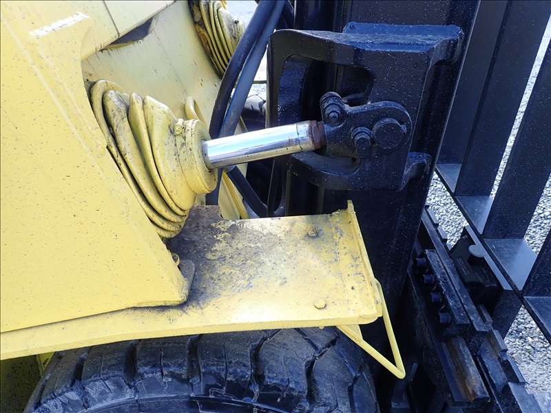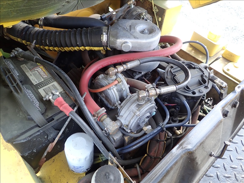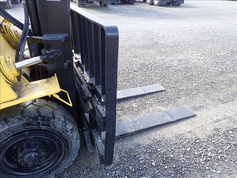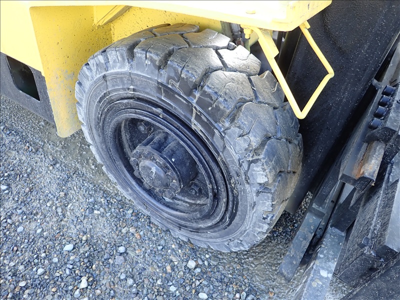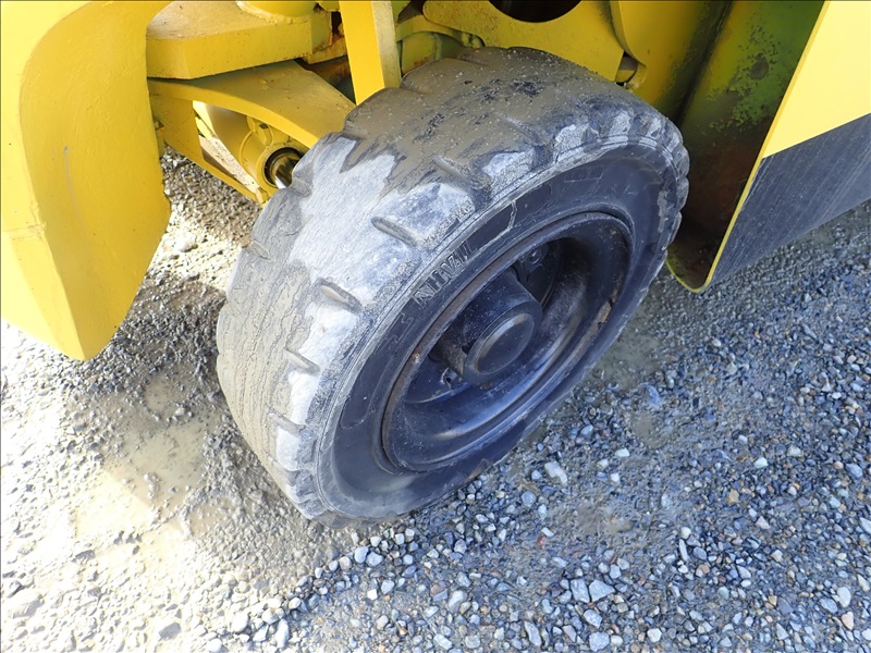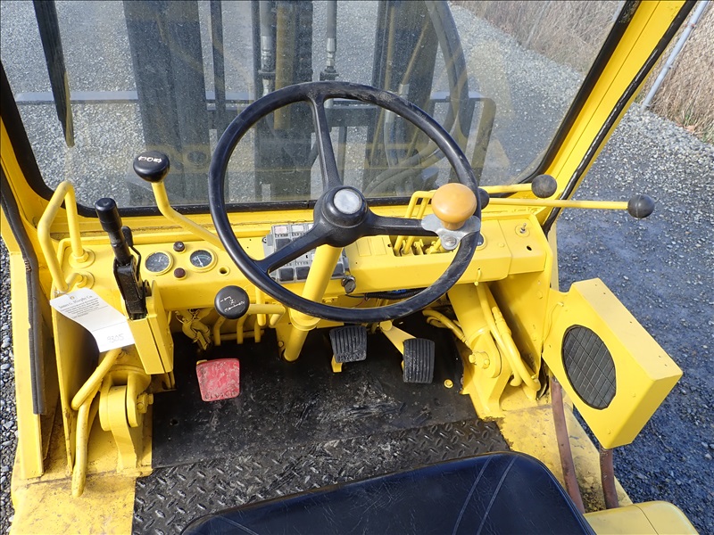 SOLID CUSHION TIRE FORKLIFT,169" FORK HEIGHT, 2-STAGEMAST, SIDE SHIFT, LUMBERFORKS, 6 CYL LPGHOUR METER READS: 297