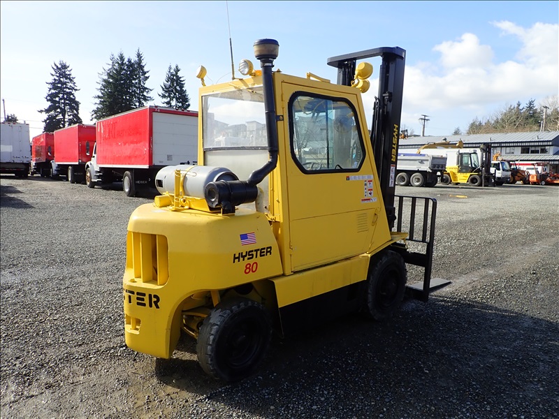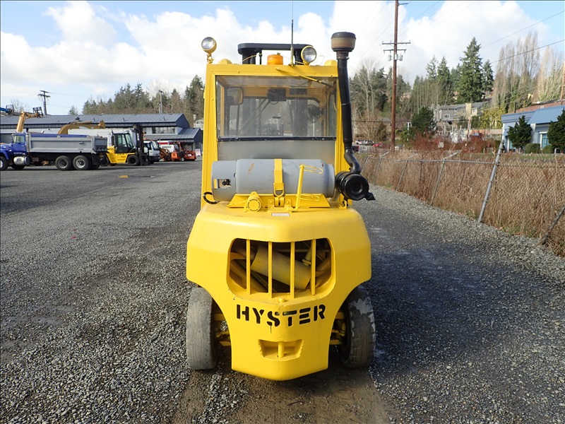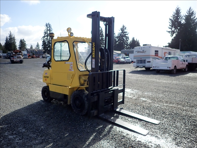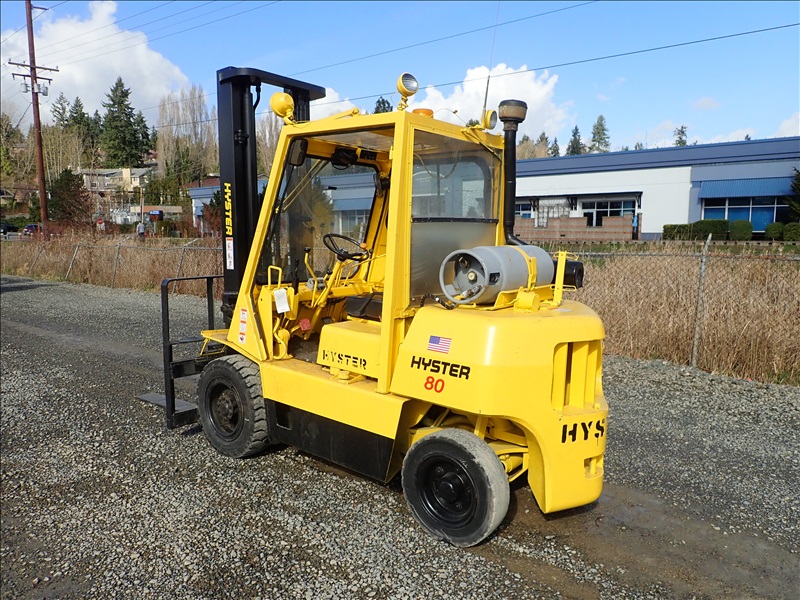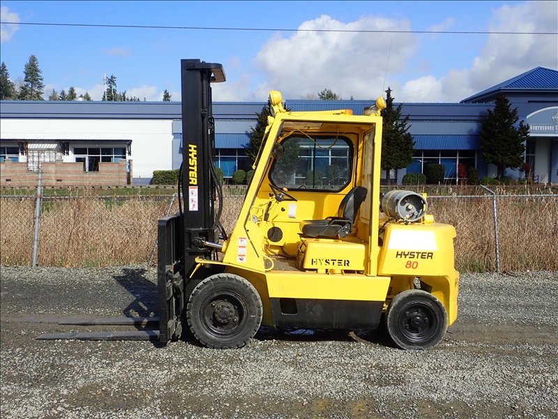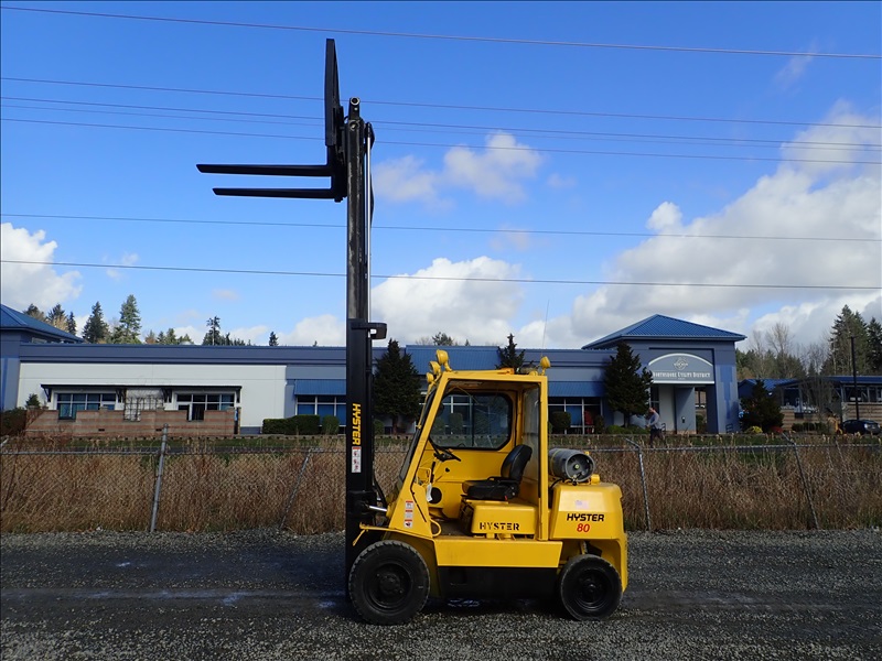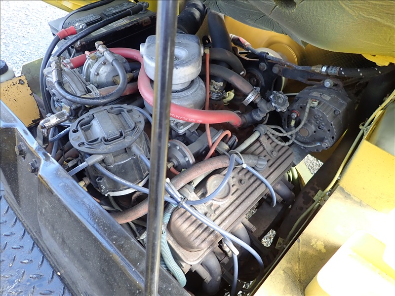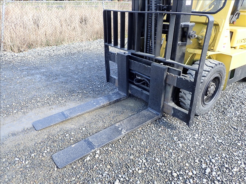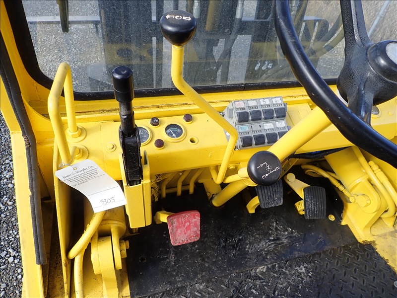 SOLID CUSHION TIRE FORKLIFT,169" FORK HEIGHT, 2-STAGEMAST, SIDE SHIFT, LUMBERFORKS, 6 CYL LPGHOUR METER READS: 297
