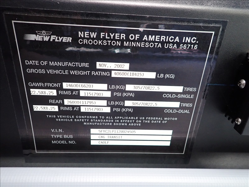 40' 39 PASSENGER BUS, 6 CYL CUMMINS CNG, AUTO, A/C, A/B