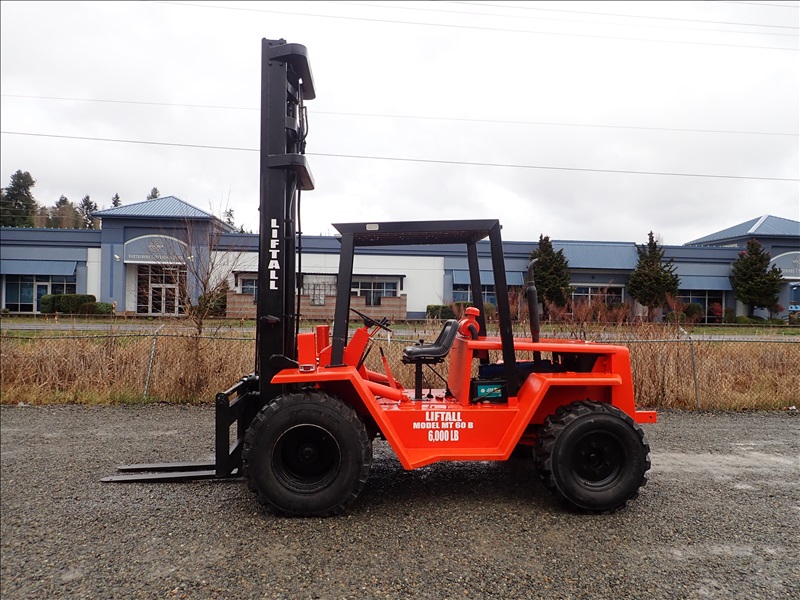 6000 LB ROUGH TERRIAN FORKLIFT, 30' 3 STAGE MAST, 6 CYL