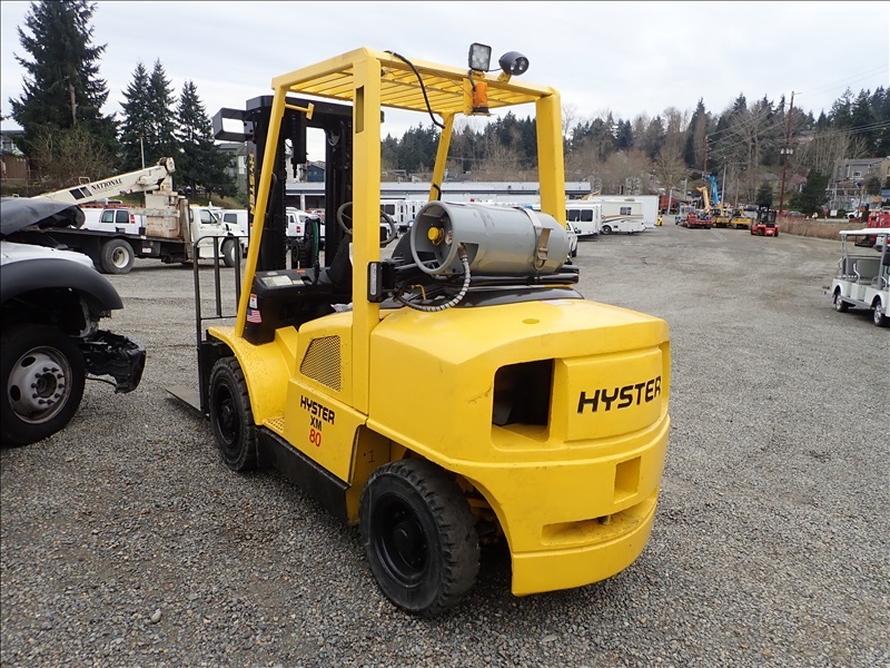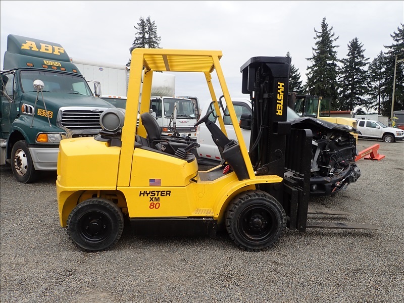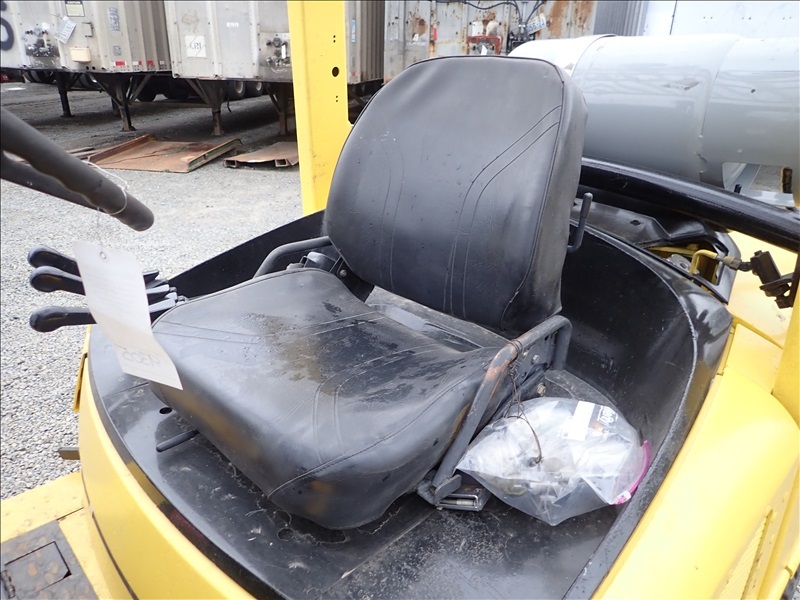 8,000 LB SOLID TRACTION TIREFORKLIFT, 185" FORK HEIGHT,3-STAGE MAST, SIDE SHIFT,LUMBER FORKS, 6 CYL LPG(BAD STARTER OR RING GEAR)HOUR METER READS: 5,593