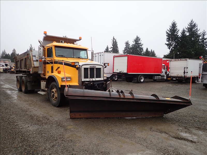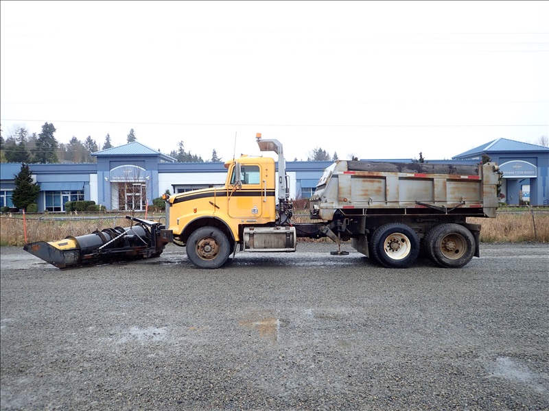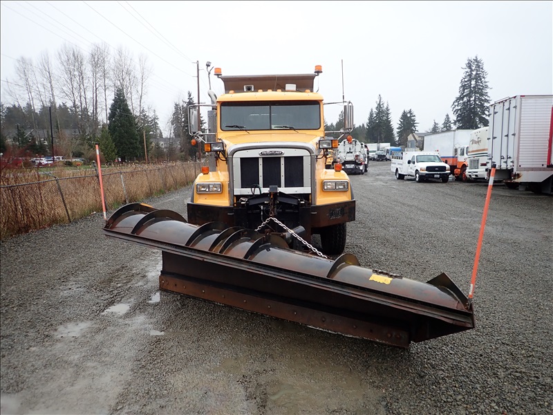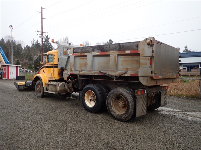 T/A DUMP TRUCK, 14' STEEL BOX, DUAL TIP 14' STEEL BOX, INTERGRATED SANDER/SPREADER, 410 HP CAT C-12, 18 SPD, TUF TRAC, 207" W/B, 20,000 LB FRONT, 46,000 LB REARS, HENKI SNOW PLOW, (SPEEDO REPLACED AT 226,479)