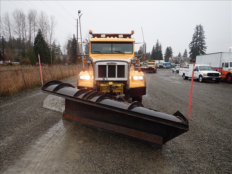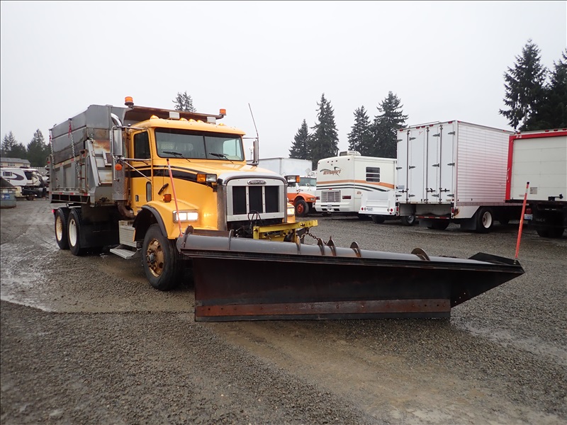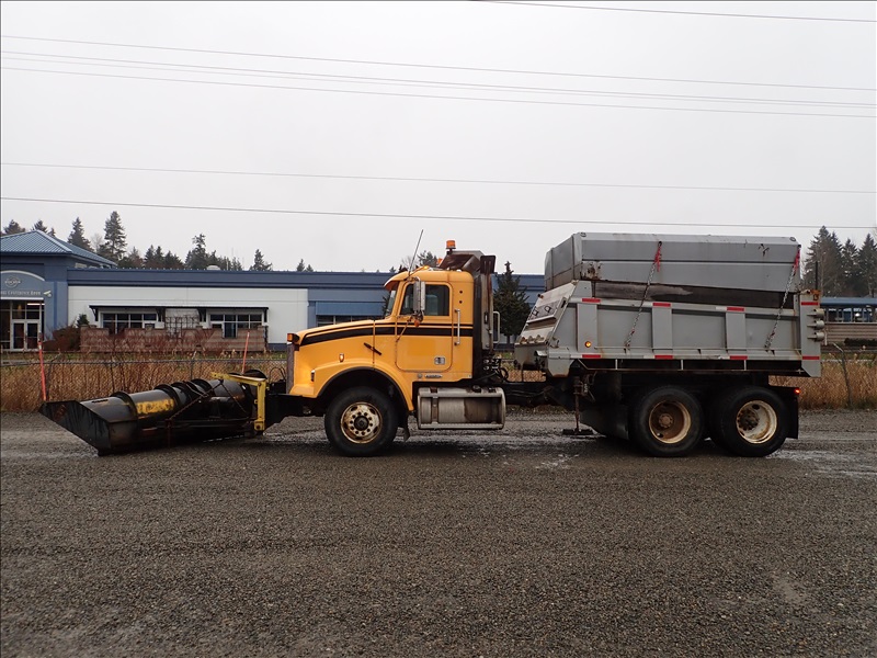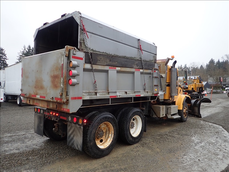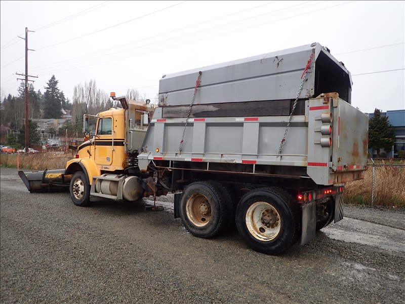 T/A DUMP TRUCK, 14' STEEL BOX, DUAL TIP 14' STEEL BOX INTERGRATED SANDER/SPREADER, 410 HP CAT C-12, 18 SPD, TUF TRAC, 207" W/B, 20,000 LB FRONT, 46,000 LB REARS, HENKI SNOW PLOW