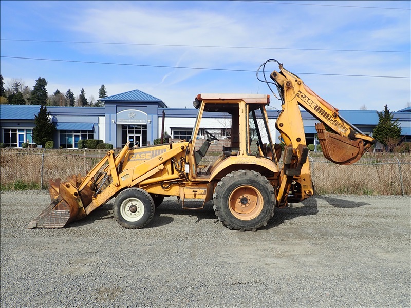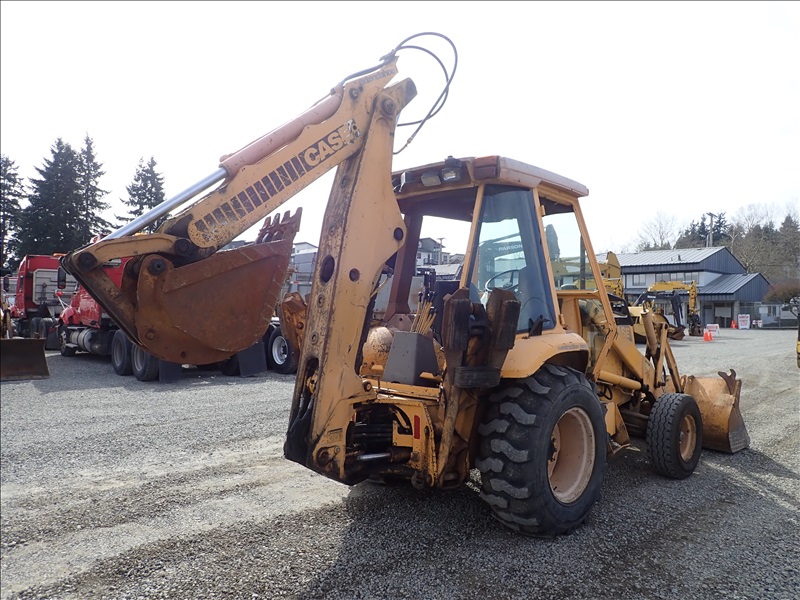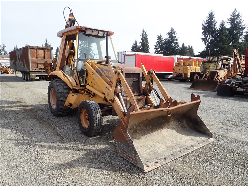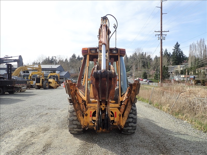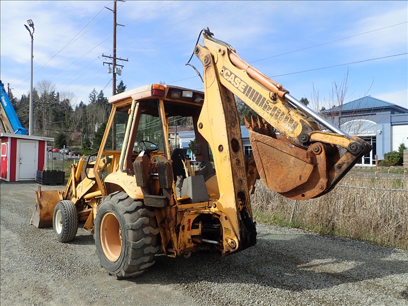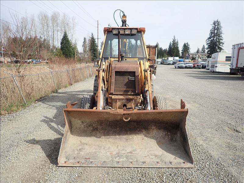 BACKHOE, 63 HP 4-390, 4F/4R, EXTENDAHOE, AUX HYD, CANOPY, HOUR METER READS: 9772 (REAR END CLUNKS)