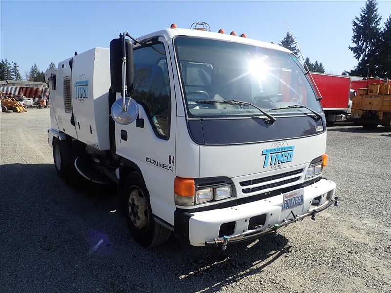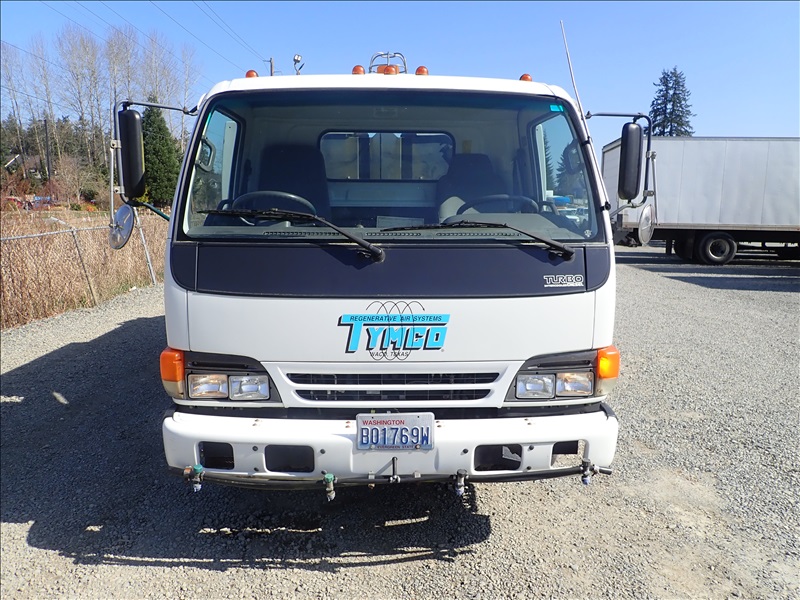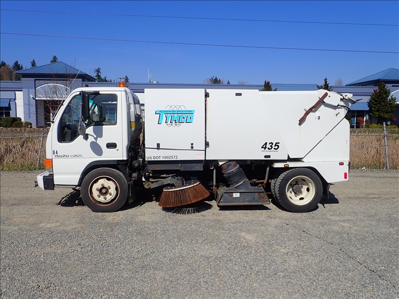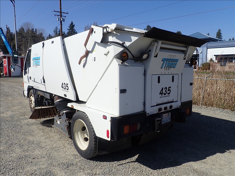 CAB/OVER, TYMCO 435 AIR SWEEPER, DUAL GUTTER BROOMS, AUX KUBOTA 4 CYL DIESEL, 4 CYL DIESEL, AUTO