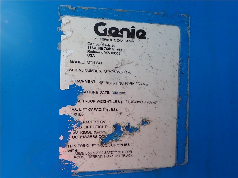 4X4X4 8000 LB TELESCOPIC FORKLIFT, 44' 3 SECTION BOOM, ROTATING CARRIAGE, JOHN DEERE 4045TF270B, 13:00R24, HOUR METER READS: 1151