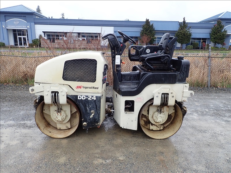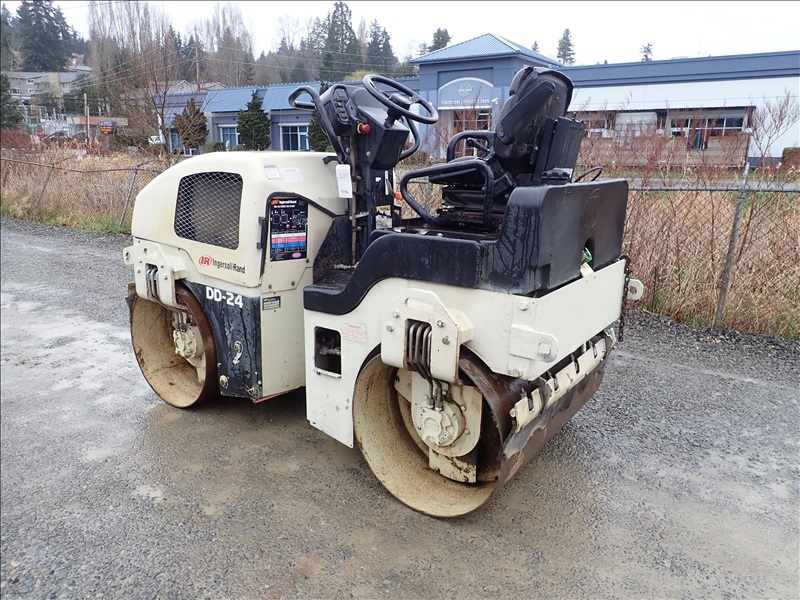 TANDEM VIBRATORY ROLLER, 49" SMOOTH DRUMS, WATER SYSTEM, KUBOTA V2203, HOUR METER READS: 2897