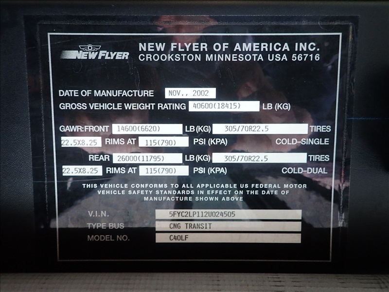 40' 39-PASSENGER BUS, 6 CYL CUMMINS CNG, AUTO, A/C, A/B, ODOMETER READS: UNKNOWN, ( DOES NOT RUN ELECTRICAL PROBLEM )