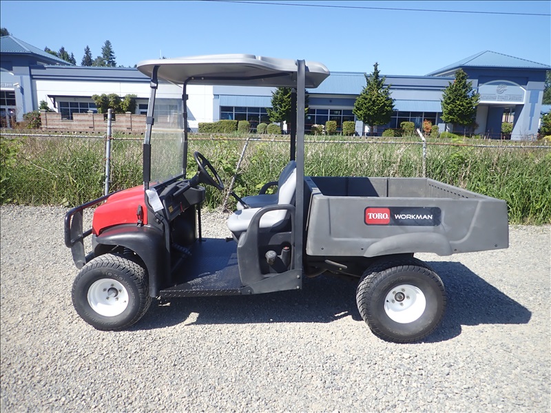 UTILITY VEHICLE, BRIGGS & STRATTON 2 CYL GAS, AUTO, MANUAL DUMP BOX, HITCH, CANOPY, HOUR METER READS: 1418