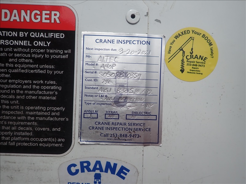 BUCKET TRUCK, ALTEC A40P, 40', 450 LB, CABLE TENSIONER, REEL HOIST, 210 HP MAXXFORCE GDT210, AUTO,