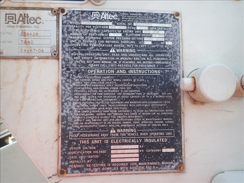 BUCKET TRUCK, ALTEC A40P, 40', 350 LB, DT466, AUTO