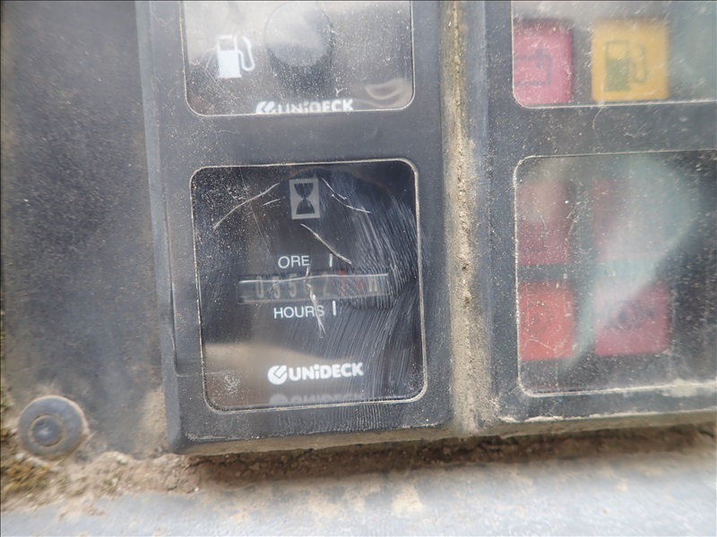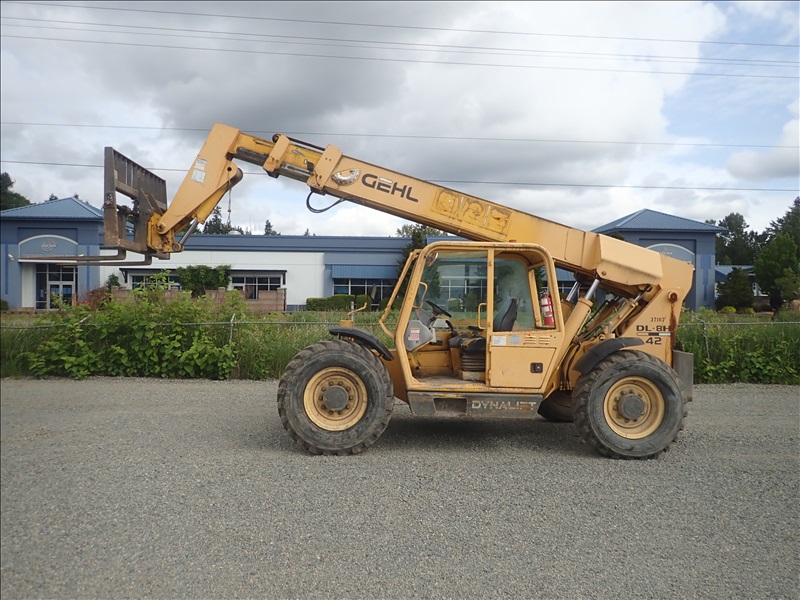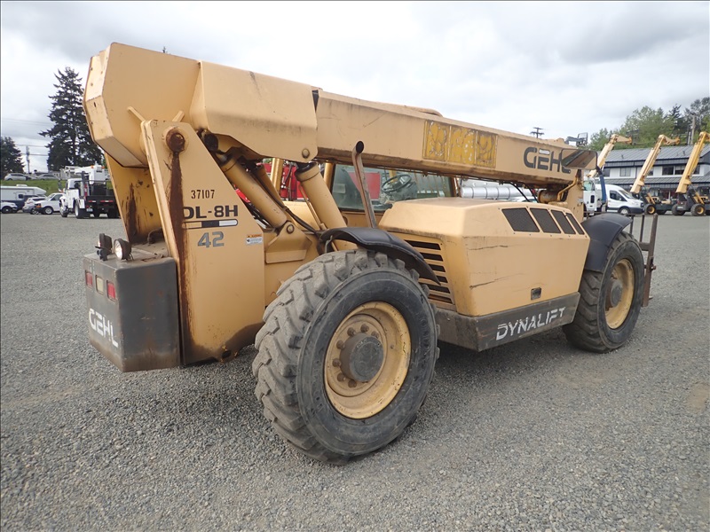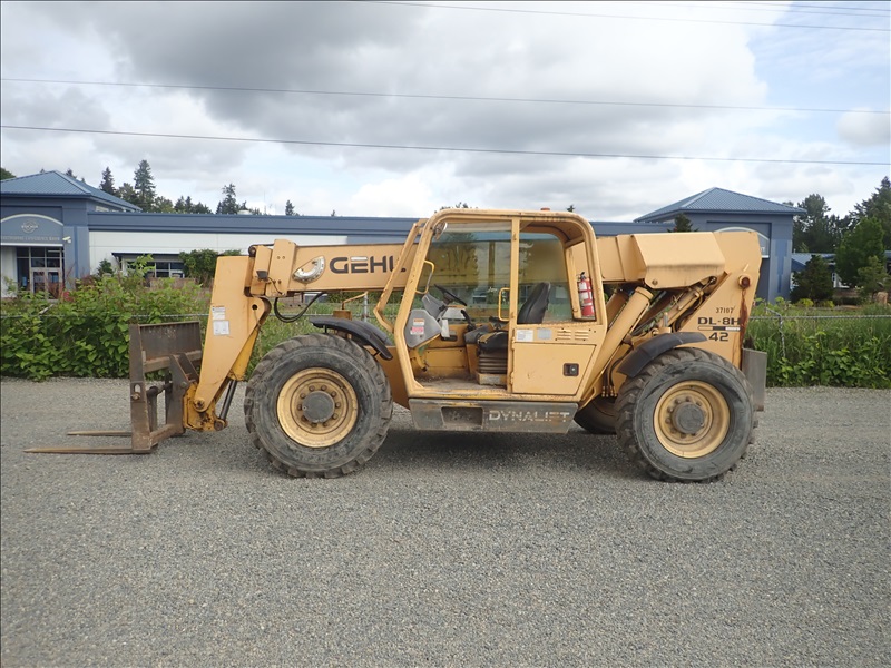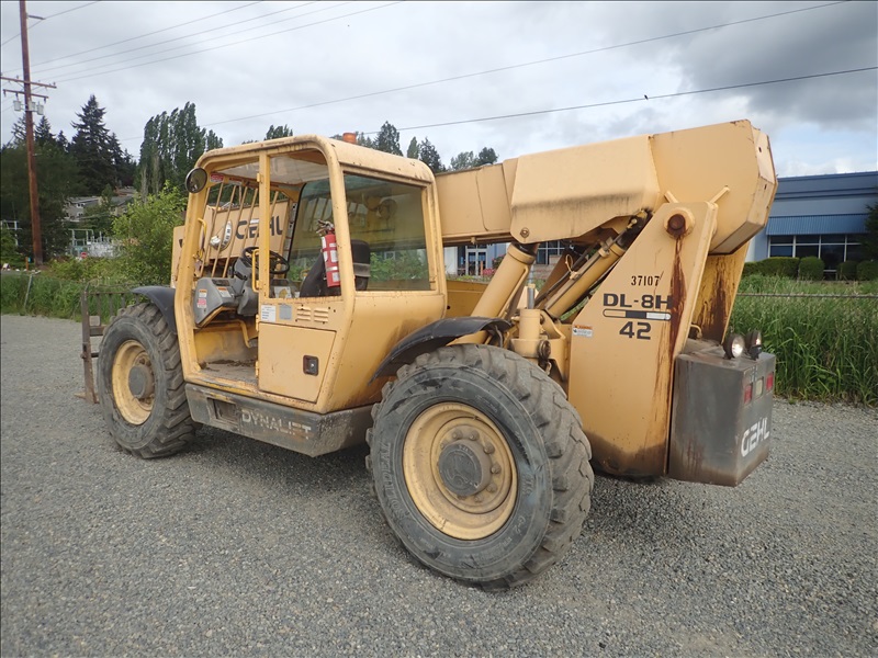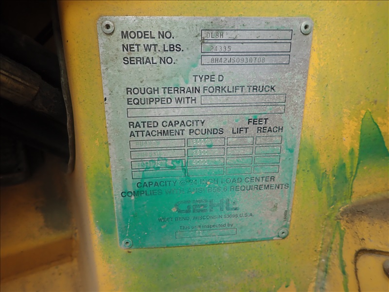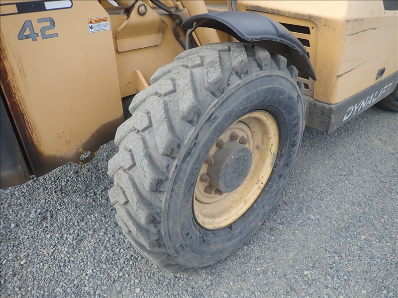4X4X4 8000 LB TELESCOPIC FORKLIFT, 42 ' 3 SECTION BOOM, JOHN DEERE 4.5L, 13.00-24, HOUR METER READS: 5542, ( WEAK BRAKES )