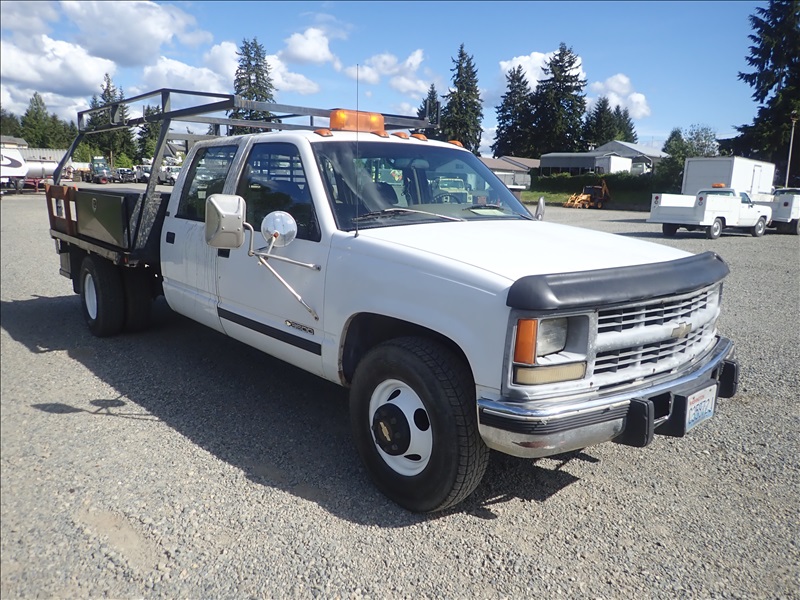 CREW CAB, 9' FLATBED, V-8 DIESEL, 5 SPD