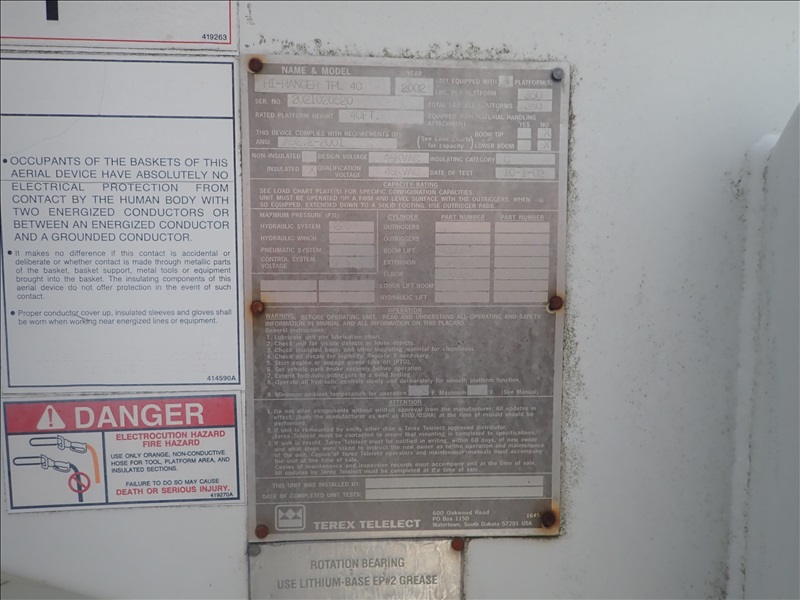 BUCKET TRUCK, HI-RANGER TPL-40, 40', 350 LB, DT466, AUTO