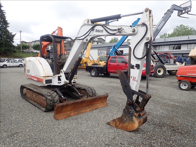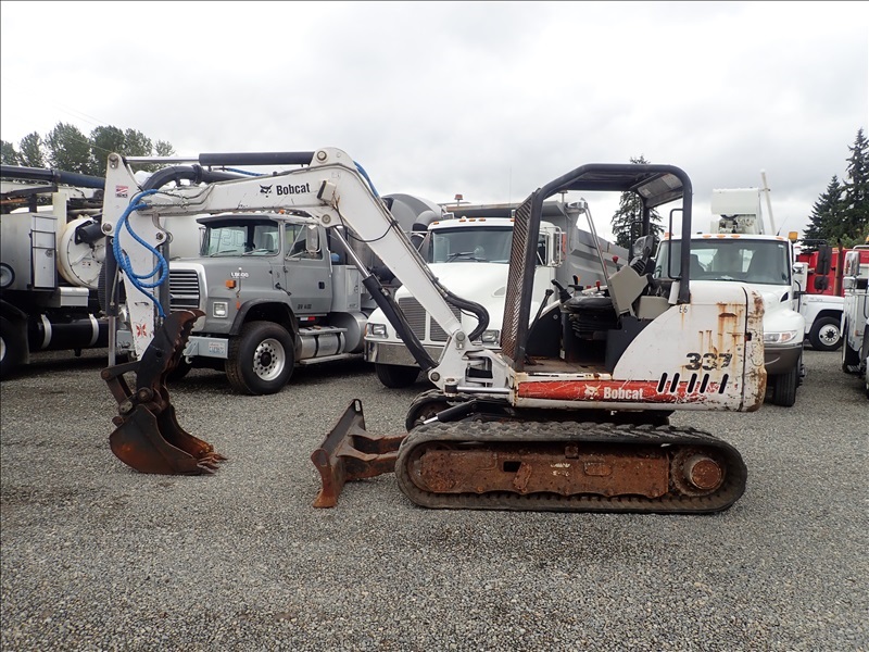 MINI EXCAVATOR, 48 HP KUBOTA V2003, SWING BOOM, HYD THUMB QC 17" BUCKET, BLADE, RUBBER TRACKS, CANOPY, HOUR METER READS: 3799