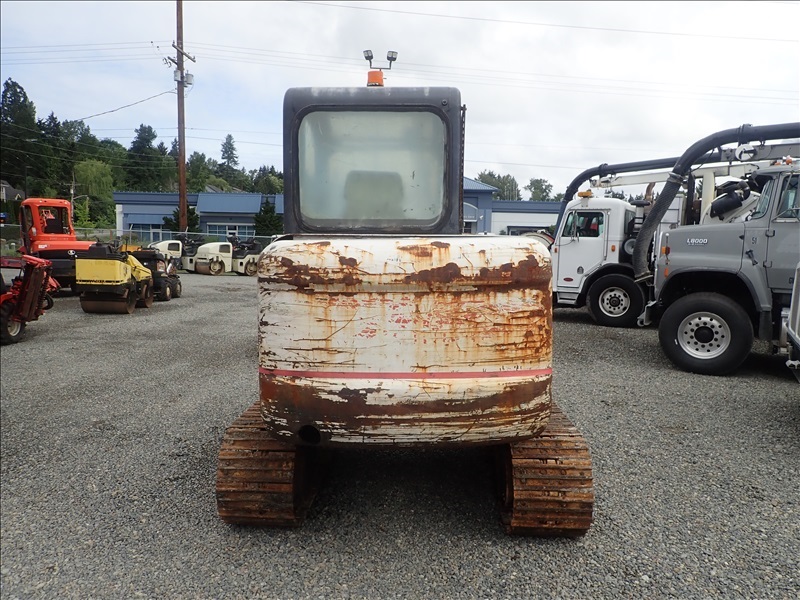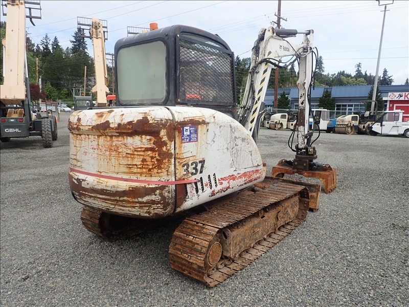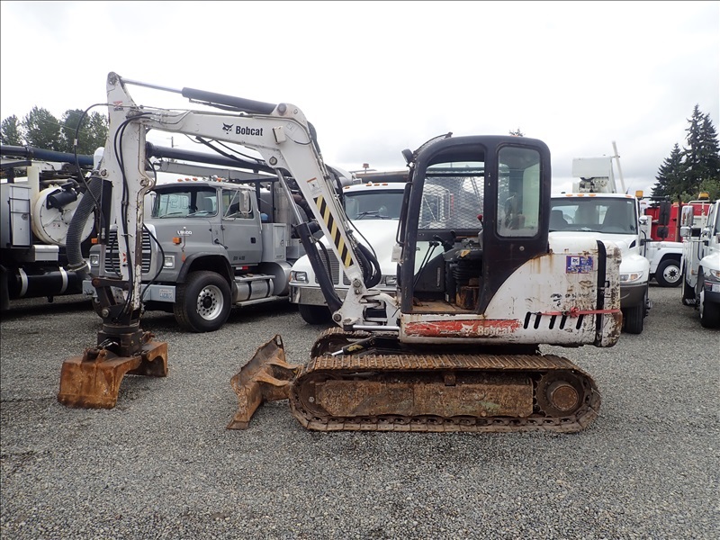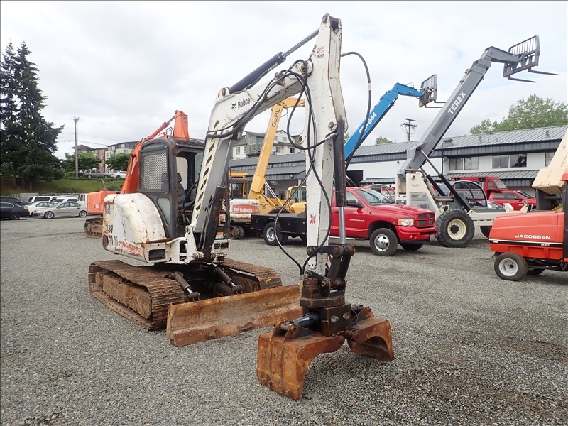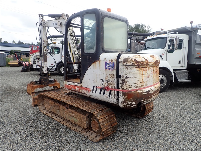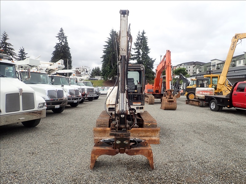 MINI EXCAVATOR, 48 HP KUBOTA V2203, SWING BOOM, BC 40 ROTATING GRAPPLE, BLADE, CANOPY, HOUR METER READS: 8847