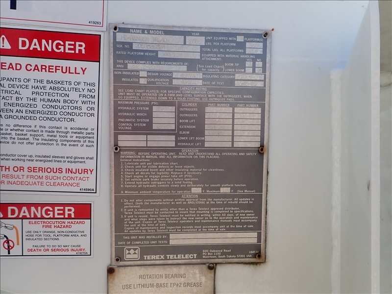 BUCKET TRUCK, HI-RANGER TPL40, 40' 350 LB, DT466, AUTO
