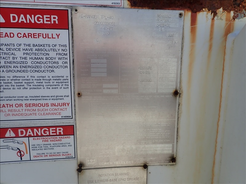 BUCKET TRUCK, HI-RANGER TPL40, 40', 350 LB, DT466, AUTO