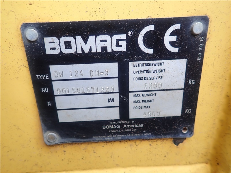 VIBRATORY SINGLE DRUM ROLLER, 47" SMOOTH DRUM, DEUTZ F3L2011, 9.5-24, CANOPY, HOUR METER READS: 1388