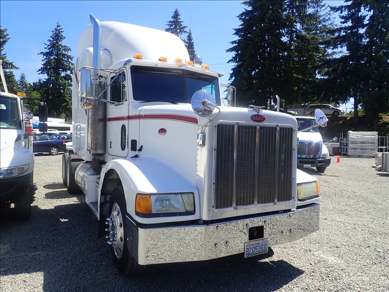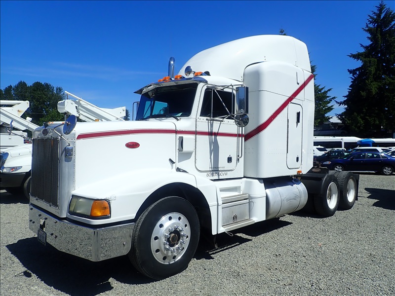 T/A SLEEPER TRACTOR, 350 HP DETROIT SERIES 60, 9 SPD, AIR SUSPENSION, 222" W/B, 12,000 LB FRONT, 38,000 LB REARS, SLIDER, ( FACTORY REMANUFACTURED ENGINE INSTALLED AT 716,483 )